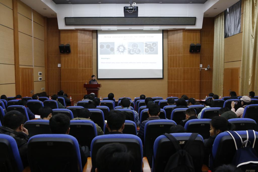 导航痕迹 当前位置: 首页 >> 新闻资讯 >> 学院新闻 >> 正文 教育部新世纪人才、湖湘青年英才、湖南省杰出青年基金获得者、中南大学升华学者特聘教授潘安强来我院讲学 作者:黄道坤、钟一靖 发布日期:2019-01-14 浏览次数: 应我院邀请,教育部新世纪人才、湖湘青年英才、湖南省杰出青年基金获得者、中南大学升华学者特聘教授潘安强于1月12日下午在雁山校区萃华楼报告厅做了题为“高容量电极材料优化设计及其电化学行为研究”的学术报告。我院部分教师和全体研究生参加了本次学术报告会。 报告会上,潘安强教授向与会师生介绍了高容量电极材料优化设计的社会背景,从锂离子电池的性能与材料的密切关系指出改进电池材料及其优化设计的必要性,向大家介绍高容量硫族化合物负极材料及纤维材料的优势,并生动的展示了双金属硫化物作为钠离子电池高性能负极材料的研究成果。此外,潘安强教授还就科研思维的培养与师生们进行了交流。 本次学术报告内容丰富、深入浅出,师生们在互动环节踊跃提问,报告会学术氛围十分浓厚。潘教授针对师生们的提问进行了详细解答。本场报告会加深了师生们对高容量电极材料设计与其电化学行为方面的理解,对他们今后的科学研究具有积极地启发意义。 教育部新世纪人才、湖湘青年英才、湖南省杰出青年基金获得者、中南大学升华学者特聘教授潘安强在做学术报告 报告会现场 上一条:学院举办《创新点燃梦想,挑战改变人生》专题讲座 下一条:南京大学燕红教授来我校讲学