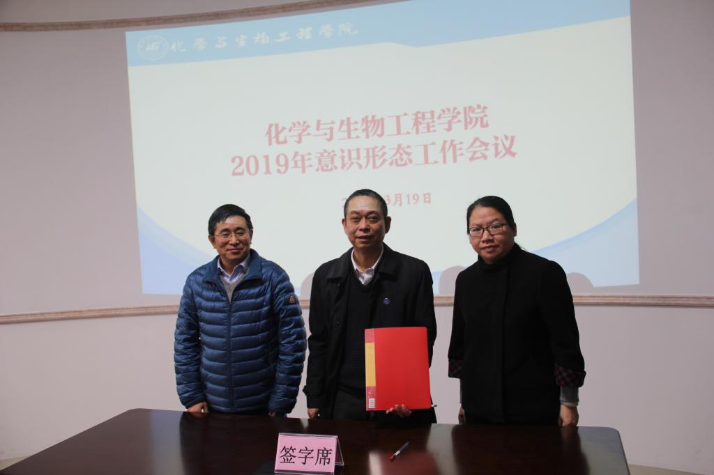 会上,梁军书记传达了学校有关会议精神。梁书记对去年学院意识形态工作进行了总结,还就今年的工作总体目标、责任分工、调研排查等工作进行了布置。会议还学习了有关材料条款内容。会议第二环节,学院领导及各层次负责人层层签订了工作责任书,将责任落实到人。