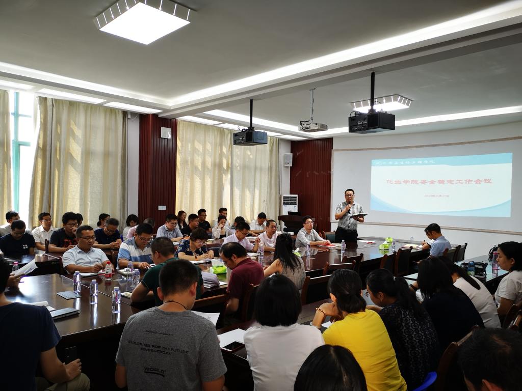 9月27日下午,我院在雁山校区12217多功能室召开安全稳定工作会议,学院全体教职工参加了会议;9月30日,学院召开了领导班子会议,在家的领导参加了会议。这些会议传达了学校新中国成立70周年庆祝活动期间学校安全稳定工作电视电话会议、全校处级党员领导干部会议、全区学校安全稳定工作电视电话会议精神,对学院的安全稳定工作进行了详细布置。会议要求,全院师生特别是领导干部要空前重视国庆节前后的安全稳定工作,要将保持高度警惕,牢固树立安全稳定高于一切的思想,层层压实安全稳定责任,加强问题隐患排查整治,齐心协力构筑学院安全防线,为伟大祖国庆生营造良好氛围贡献力量。