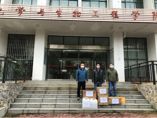 自发生新型冠状病毒肺炎疫情以来,学院领导加强落实疫情防控工作。在做好自身防控工作的同时,积极履行社会责任,助力疫情防控,全院师生上下同心,举全院之力量,与疫情做斗争。在疫情防控物资短缺的关键时期,结合我院特点,学院领导决定将我院现有教学用品捐赠给疫情防控一线单位。2月7日,梁军书记和匡小军院长安排实验中心老师从25间实验室、应急柜、应急医药箱收集到33升75%乙醇和500副防护眼镜,价值合计数万元,用于捐赠给我校疫情防控工作小组和资源县红十字会。