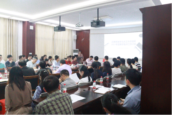 会上,协助分管教学工作的院长助理聂瑾芳首先从专业建设、课程建设和教学竞赛等几个方面总结了学院过去一年的教学亮点工作。接着,她从推进学院专业建设(国家级一流专业建设、专业认证和新工科建设)和抓好学院质量工程建设(推动课堂教学革命、推动“五类”金课建设、推动课程思政建设和广西教学成果奖申报)两个方面对2021年教学重点工作做了详细讲解,她还对各教研室会后做好2021年度教学相关工作进行了布置。