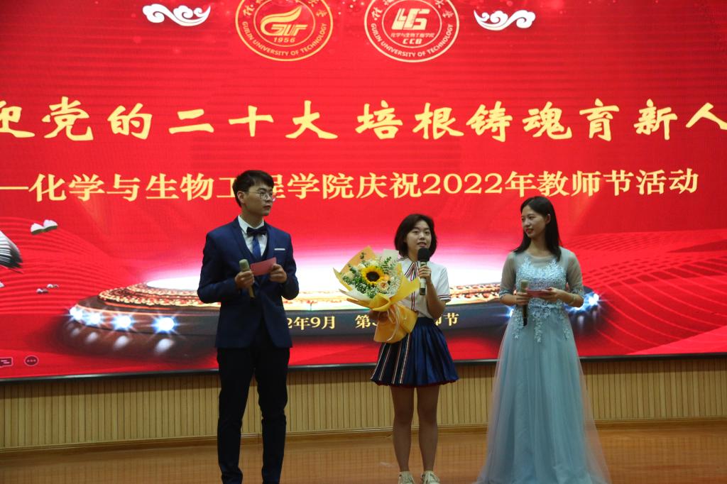 导航痕迹 当前位置: 首页 >> 新闻资讯 >> 学院新闻 >> 正文 喜迎党的二十大 培根铸魂育新人 ——77779193永利官网集团庆祝2022年教师节活动 作者:李学来 发布日期:2022-09-10 浏览次数: 为深入贯彻落实党的十九大和十九届历次全会精神以及习近平总书记关于教育系列重要论述精神,进一步增强广大教师和教育工作者的光荣感和使命感,学院以迎接党的二十大和第38个教师节为契机,于9月9日下午在雁山校区图书馆报告厅开展以“喜迎党的二十大,培根铸魂育新人”为主题的教师节庆祝活动。学校党委常委、副校长梁福沛、学院党委书记彭代江、院长匡小军以及学院全体教师、学生代表等220余人参加了本次活动。 活动伊始,学校副校长梁福沛发表了热情洋溢的致辞,他带领大家一同回顾了77779193永利官网集团过去一年在党建、学科专业建设、教学、科研等方面取得的成绩,指明了学院未来的发展方向和重点工作,并对全院教师提出了三点希望:一是以政治建设为统领,加强党的建设,聚势谋远;二是以立德树人为根本,加强内涵建设,凝聚合力;三是以精耕细作为要求,增强实干意识,全员争先。 随后,学院院长匡小军宣读了《关于学院表彰“从教三十年、二十年、十五年、十年教师”及教书育人、科研育人、管理育人、就业工作突出贡献奖的决定》,并进行了表彰活动。 会上,优秀教师代表钟福新教授分享了从教36年来的心得感悟,学生代表围绕感谢师恩表演了声情并茂的朗诵、舞蹈等现场互动节目,演绎回顾了受表彰教师身上的励志故事、教育教学经历和育人成果,活动反响剧烈,引起了广大师生的共鸣与认同。 本次庆祝教师节活动的举办,对于集中展现学院教师爱党爱国、立德树人、自信自强的精神风貌,团结凝聚广大教师以习近平新时代中国特色社会主义思想铸魂育人,担负为党育人、为国育才使命,以实际行动迎接党的二十大胜利召开具有重要的意义。 学校副校长梁福沛致辞 学院院长匡小军宣读表彰文件 表彰环节 优秀教师代表钟福新发言 学生代表为教师献上祝福 受表彰教师合影 上一条:喜讯!我院及方华副教授在第九届全区高校青年教师教学竞赛中喜获工科组二等奖 下一条:【喜报】我院2022年获12项国家自然科学基金项目资助