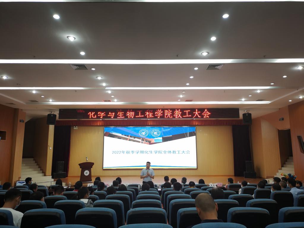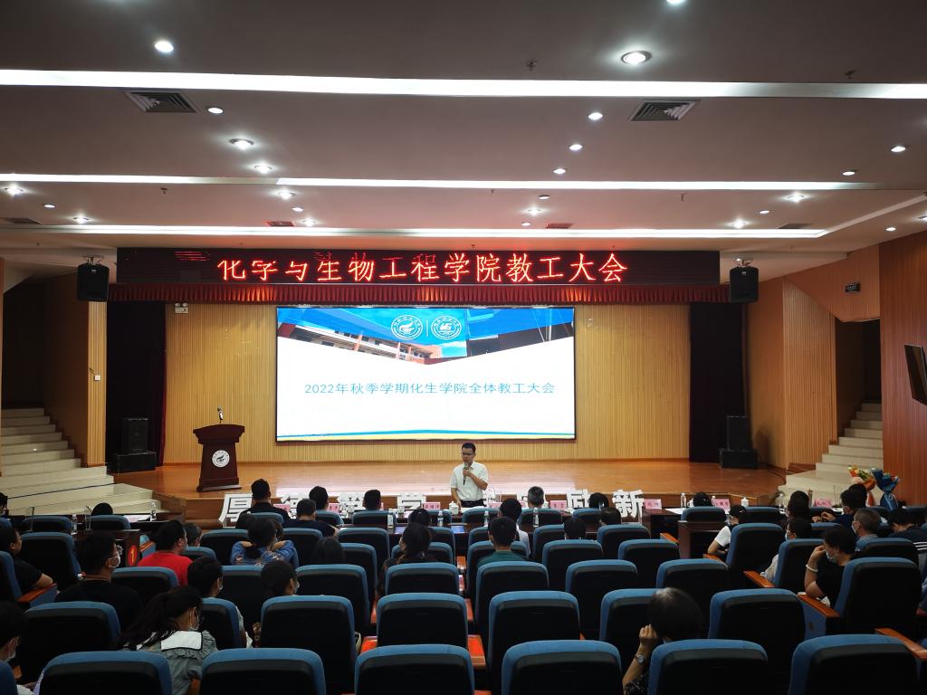 导航痕迹 当前位置: 首页 >> 新闻资讯 >> 学院新闻 >> 正文 我院召开全院教工大会 作者:林文钊 发布日期:2022-09-10 浏览次数: 2022年9月9日下午,我院在雁山校区图书馆报告厅召开了全院教工大会。学院全体教工参会会议,会议由学院院长匡小军主持。 会上,学院各分管领导分别就所分管领域工作进行总结并对下一步工作进行了布置。 匡小军院长和彭代江书记在讲话中对学院在博士点建设、人才引进和培育、华南理工大学与中南大学对口支援、在意识形态安全、学生安全、实验室安全、疫情防控以及党风廉政建设等工作进行了总结和布置。他们强调,领导老师们要认真做好开学工作总结,在为取得开学阶段性成绩而感到高兴的同时,更要清醒认识到各项工作存在的不足。他们要求,中秋节和教师节期间,要守好学院安全底线,重点做好假期间的学生管理、实验室安全、疫情防控、意识形态等方面安全稳定工作;要遵守党纪国法,廉洁过节;要在博士点建设等学院重点工作方面多做工作;要做好新生入学的各项服务工作,做好迎新工作。匡小军院长和彭代江书记预祝老师们“双节”快乐,并勉励大家同心同德,努力奋斗,为推动学院又好又快发展做出新的更大贡献。 会议现场(一) 会议现场(二) 上一条:我院组织开展专题片《习近平的教师情》学习活动 下一条:喜讯!我院及方华副教授在第九届全区高校青年教师教学竞赛中喜获工科组二等奖