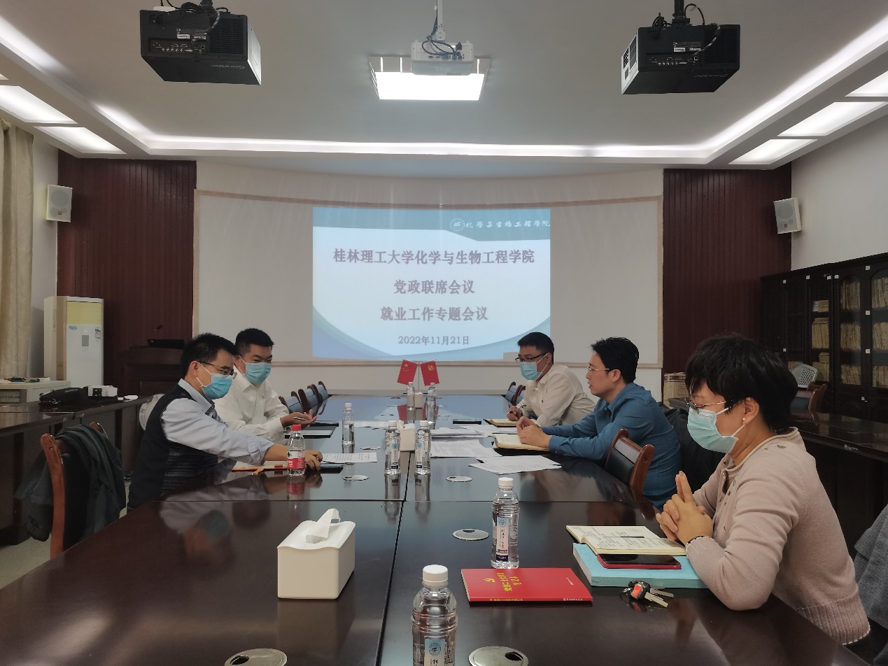 导航痕迹 当前位置: 首页 >> 新闻资讯 >> 学院新闻 >> 正文 我院召开2023届毕业生就业工作专题会议 作者:刘耀明 发布日期:2022-11-22 浏览次数: 为做好我院2023届毕业生就业工作,11月21日下午,在雁山校区12217会议室,通过线下和线上相结合的方式,我院召开2023届毕业生就业工作专题会议。我院全体党政领导参加了会议,会议由学院党委书记彭代江主持。 会上,学院党委副书记李少华介绍了我院2023届毕业生目前的就业情况,对目前就业工作存在的问题和下一步工作举措进行了汇报。接着,与会人员就如何做好下一步就业工作进行了充分研讨。 最后,学院党委书记彭代江就做好下一步就业工作提出了明确要求。一是辅导员要摸清未就业学生的具体情况和存在的困难;二是指导教师在指导学生毕业设计的同时,也要关心和指导学生的就业;三是大家要多到企业调研,开展“访企拓岗”工作;四是要加强对考研学生关心和指导,提升学生考研的录取率。 会议现场 上一条:我院教师党员切实发挥党员先锋岗作用 在疫情防控一线中积极行动 下一条:我院学子在第十一届广西大学生化学实验技能竞赛中喜获佳绩