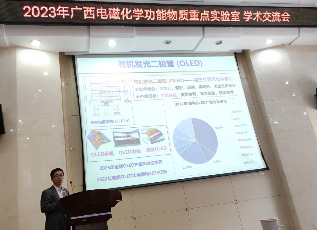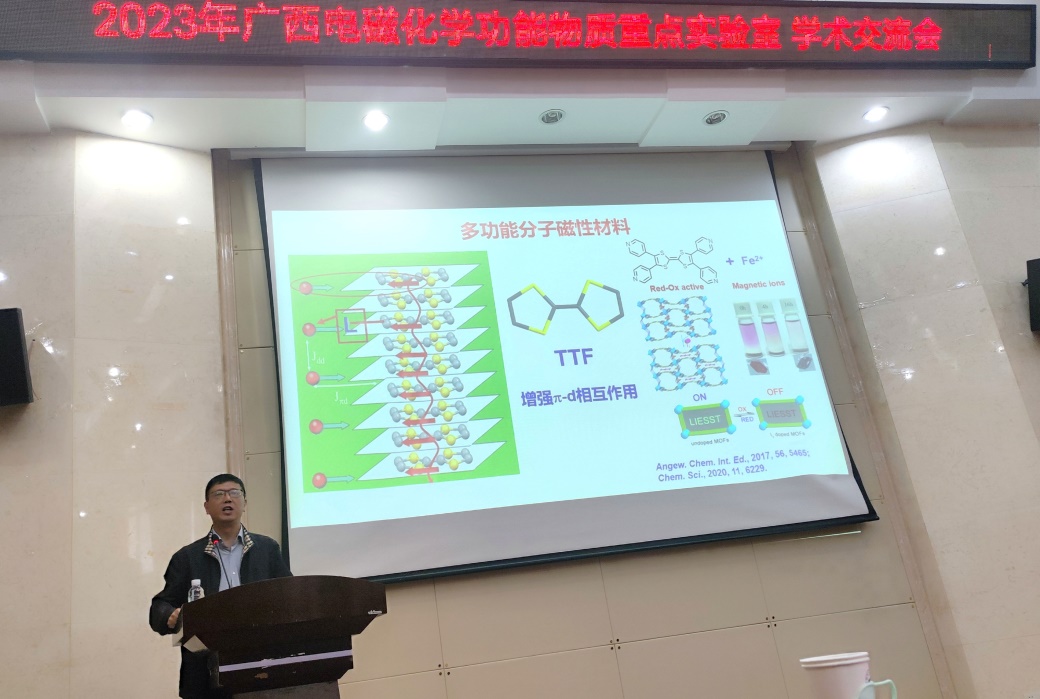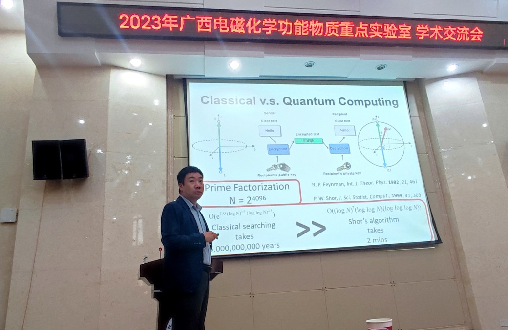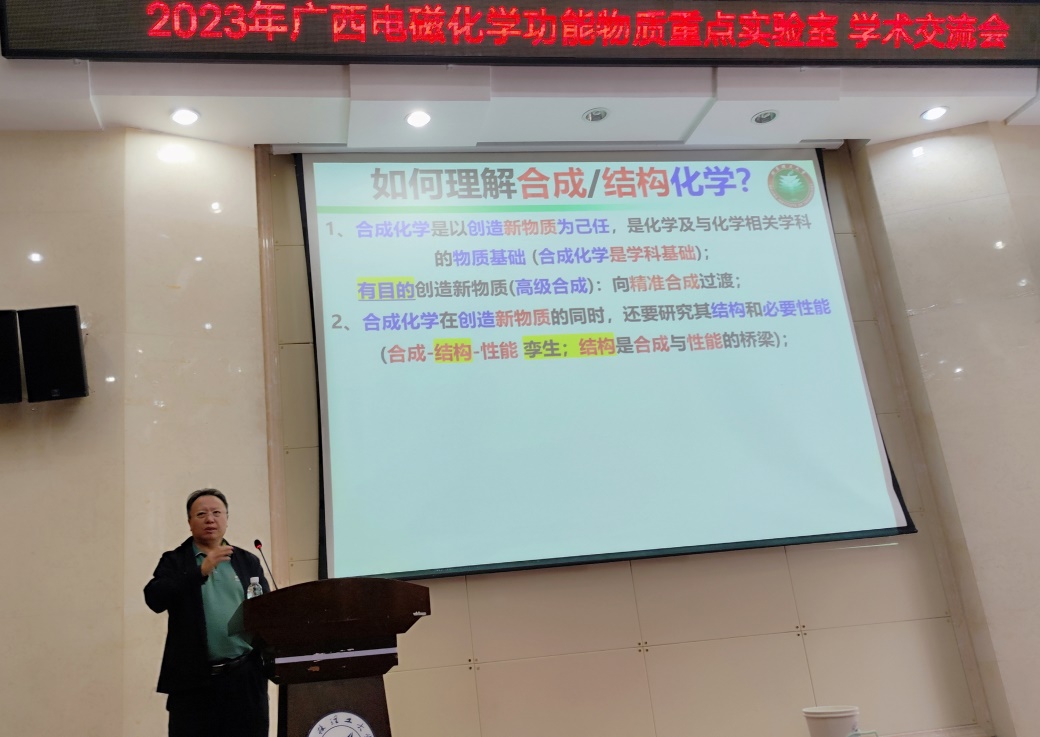 导航痕迹 当前位置: 首页 >> 新闻资讯 >> 学院新闻 >> 正文 我院成功举办2023年广西电磁化学功能物质重点实验室学术交流会 作者:唐群 发布日期:2023-10-16 浏览次数: 10月14日上午,我院在雁山校区萃华楼报告厅召开了2023年广西电磁化学功能物质重点实验室(以下简称重点实验室)学术交流会。重点实验室主任梁福沛教授出席并致辞。本次会议邀请到北京理工大学杨国昱教授、中国科学院福建物构所陈忠宁教授、南京大学左景林教授、上海交通大学崔勇教授、华南理工大学蒋尚达教授、中山大学童明良教授等六位专家出席会议并作学术报告,会议由我院副院长刘勇平教授主持,学院学术骨干和研究生120余人参加了本次会议。 首先,梁福沛教授对参加本次会议的各位专家、老师表示热烈欢迎和感谢,并重点介绍了77779193永利(中国)集团和重点实验室近年来的发展情况。他表示希望通过举办学术交流活动,加强与校外专家的交流合作,促进重点实验室发展,进一步提升学院学科建设水平。 随后,在梁福沛教授的主持下,杨国昱教授、陈忠宁教授、左景林教授分别做了题为“缺位导向与配位取代策略构筑硼镍钨氧合团簇”、“若干新型功能配合物材料与器件”、“氧化还原活性光电功能配合物研究”的学术报告。接着,在杨国昱教授的主持下,崔勇教授、蒋尚达教授、童明良教授分别做了题为“手性聚集和结晶——手性金属有机大环”、“磁性分子的量子相干操控”、“自旋交叉MOF材料的化学调控”的学术报告。 本次学术交流会报告内容丰富,精彩纷呈,与会师生们进行了广泛交流和深入探讨。本次学术交流会拓宽了大家的学术视野,取得了良好交流效果。 梁福沛教授主持会议 杨国昱教授作学术报告 陈忠宁教授作学术报告 左景林教授作学术报告 崔勇教授作学术报告 蒋尚达教授作学术报告 童明良教授作学术报告 上一条:我校举办“固体化学国际研讨会”学术会议 下一条:我院召开学科建设研讨会