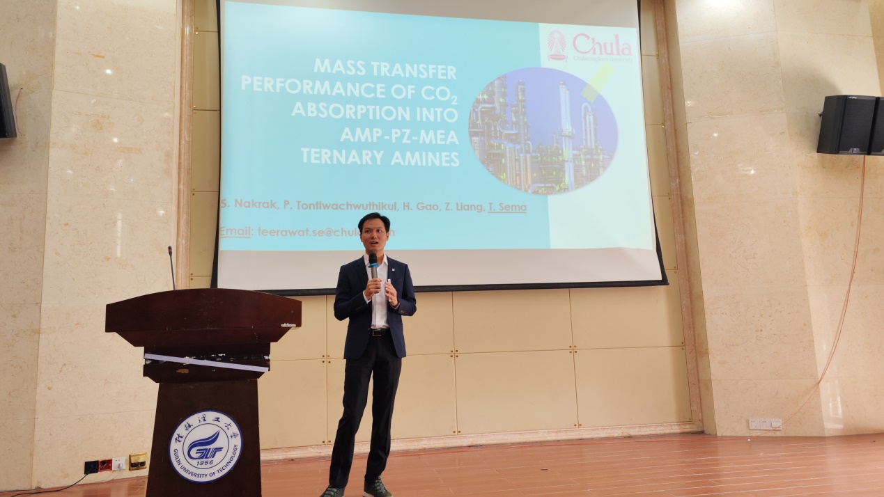 导航痕迹 当前位置: 首页 >> 新闻资讯 >> 学院新闻 >> 正文 湖南大学梁志武教授和泰国曼谷朱拉隆功大学Teerawat Sema博士应邀到我院作学术报告 作者:杨文 发布日期:2023-10-25 浏览次数: 应我院邀请,湖南大学梁志武教授和泰国曼谷朱拉隆功大学Teerawat Sema博士于2023年10月24日上午在雁山校区萃华楼报告厅作学术报告。报告会由学院副院长刘勇平教授主持,学院教师和相关专业学生聆听了报告。 梁志武教授和Teerawat Sema博士分别作了题为“胺吸收法捕获二氧化碳的化工工程基础”和“Mass transfer performance of CO2 absorption into AMP-PZ-MEA ternary solvent”的学术报告,为我院师生分享了胺吸附剂对二氧化碳吸附、解吸和传质动力学等方面的最新研究成果及其工程应用案例。 学术报告内容丰富,精彩纷呈,为我院师生提供了宝贵的学习和交流机会,开拓了学术视野,激发了科研热情和动力。 梁志武教授作学术报告 Teerawat Sema博士作学术报告 上一条:高德英特(北京)科技有限公司鞠焕鑫博士应邀到我院作学术报告 下一条:我院师生应邀参加第三届功能材料与界面科学大会暨2023年能源青年科学家论坛
