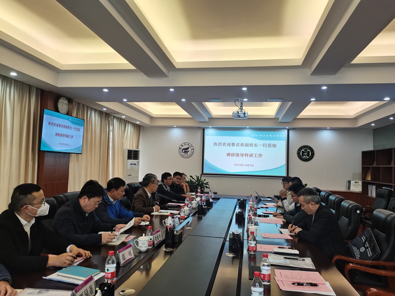 12月5日下午,学校党委常委、副校长黎贞崇在科学技术研究院负责人的陪同下对我院科研工作进行调研指导,学院党政领导班子成员及科研院相关人员在屏风校区7206会议室参加座谈会,会议由科研院院长龙飞主持。 会上,何方副院长首先就化生学院的基本情况、2023年重点科研任务完成情况、科研平台建设情况、校企科研合作、科研项目培育等方面的情况,以及下一步工作计划进行了详细的汇报,匡小军院长和彭代江书记分别进行了补充汇报。随后,科研院相关负责人与化生学院班子成员针对基金申报、服务地方经济、科研平台和团队建设等方面开展了充分的交流和讨论。 在认真听取汇报和讨论交流后,黎贞崇副校长对我院在科研工作上所取得的成绩表示了肯定。针对我院的发展情况,黎贞崇副校长提出了三点要求:一是要压实责任,进一步梳理好学院科研工作,尤其是国家基金项目的申报工作,为明年的项目申报打下扎实的基础;二是要进一步谋划好有组织的科研工作,尤其要对接好地方的需求,加大校企合作力度,做好服务地方经济工作;三是要继续谋划学院的科研创新工作,引导老师们围绕地方产业布局,解决地方产业的技术问题,促进学院科研工作创新发展。 黎贞崇副校长讲话 会议现场 (一审:刘耀明 二审:何方 三审:彭代江 )