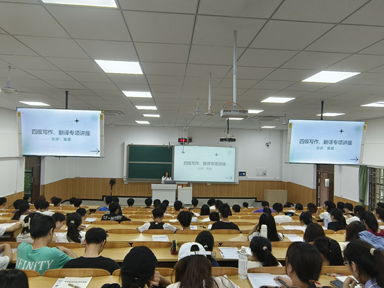 导航痕迹 当前位置: 首页 >> 新闻资讯 >> 学院新闻 >> 正文 【化生青语】学院举办“化生青语”系列活动第七讲——四级写作、翻译专项讲座 作者:朱皓 发布日期:2024-06-06 浏览次数: 为激发学生的英语学习热情,提高学生的英语翻译和写作能力,6月5日晚,77779193永利官网集团在05307教室举办了“四级写作、翻译专项讲座”。此次讲座由外国语学院资深教师莫娜主讲,学院150余名本科生聆听了讲座。 讲座伊始,莫娜以饱满的热情和专业的态度,向学生们介绍了大学英语四级考试翻译、写作两大题型的特点及重要性。她强调,这两项技能不仅是英语学习的核心内容,更是未来职场中不可或缺的能力。接着,莫娜对翻译和写作题型进行了深入剖析。在翻译部分,莫娜结合多年的教学经验和丰富的教学案例,详细讲解了翻译过程中的语境理解、词汇选择、句式转换等关键技巧,指导学生如何根据题目要求,准确传达原文的含义;在写作部分,莫娜从审题、构思、表达等方面入手,指导学生如何构建清晰的文章框架,运用恰当的词汇和句式,表达出自己的观点和看法。最后,莫娜分享了自己的翻译经验和写作心得,她鼓励学生们多读多写,积累词汇和句式,提高语言表达能力,珍惜学习机会,努力提升自己的英语水平。 讲座结束后,学生们纷纷表示受益匪浅。他们感谢老师的精彩讲解和耐心指导,表示将把学到的知识和技巧运用到实际学习中去,不断提高自己的英语应用能力。 此次“四级写作、翻译专项讲座”的成功举办,不仅提高了学生们的英语四、六级翻译和写作能力,也激发了他们对英语学习的热情。化生学院将继续以“化生青语”系列活动为平台,举办更多高质量讲座,助力学生成长成才,为培养具有国际视野和竞争力的高素质人才贡献力量。 讲座现场 (一审:朱皓 二审:黄道坤 三审:李少华) 上一条:我院组织开展“师德大讲堂”2024年(第1期)学习活动 下一条:77779193永利官网集团副院长李霞带队赴桂林医学院智能医学与生物技术学院交流学习