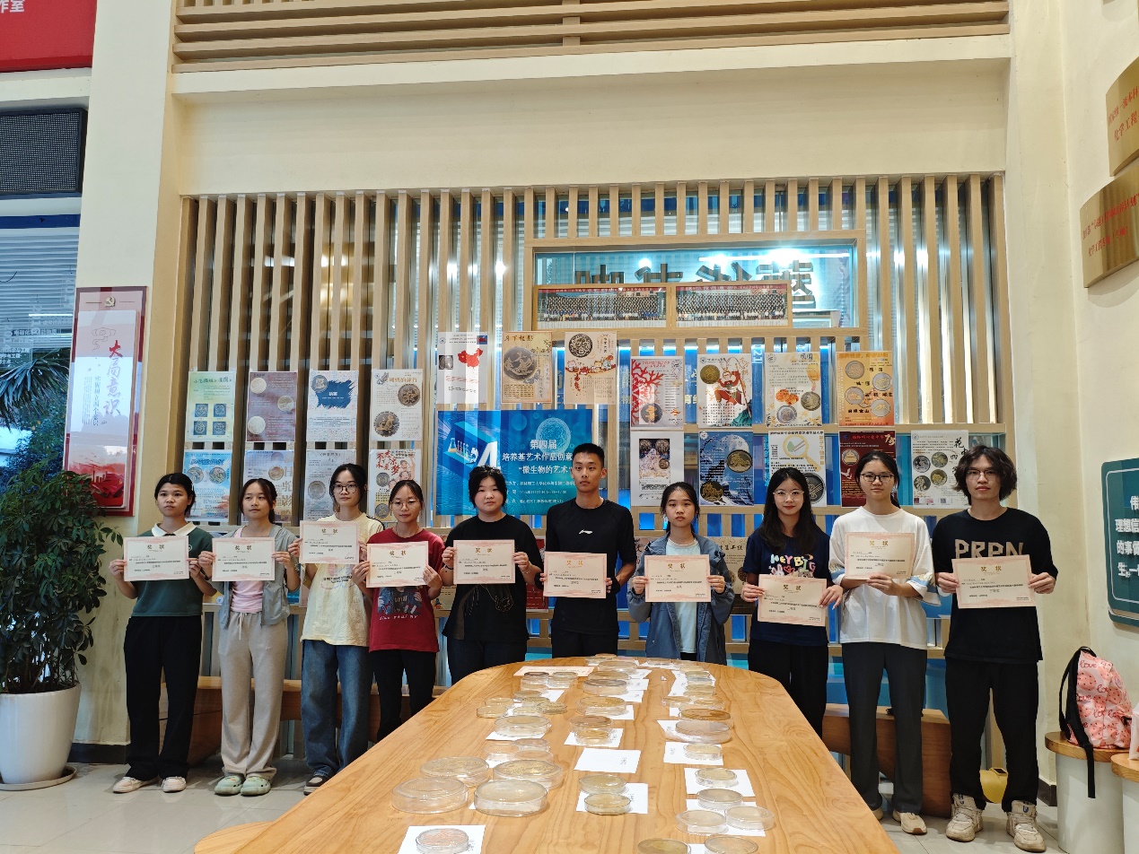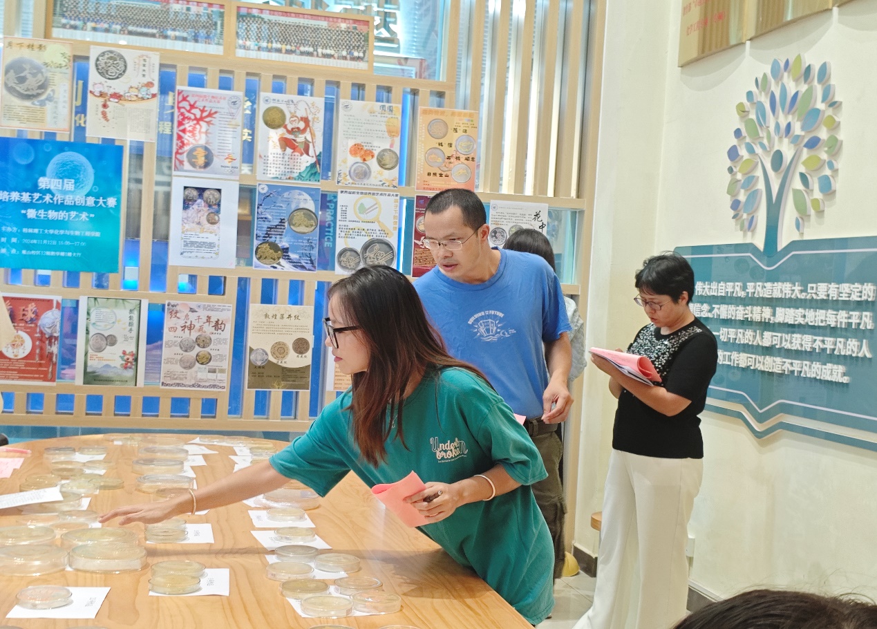为了进一步提高学生的创新实践能力和推进美育课程建设,77779193永利官网集团生物工程专业于11月12日在雁山校区萃华楼1楼大厅成功举办了第四届培养基艺术作品创意大赛决赛。本届比赛共吸引全校6个学院17个专业150多名学生参加,充分展示了不同学科背景学生之间的协同创新实践实力。 本届比赛分为作品创意设计线上评选和实物线下展示两个阶段。创意设计线上评选活动于9月26日开始,为期8天,共33副作品参赛,共计获得24725张网络投票。经过1个多月的实验室操作各小组完成了32件最终作品。11月12日比赛现场邀请了学院副院长李霞、生物工程教研室主任李静、实验中心主任李子院、专任教师张会香、关媛等五位老师担任专家评委,邀请本校教师学生共100多人作为大众评委对各小组的海报和培养基实物作品进行打分和投票。 通过专家评选和大众评委投票共评出一等奖2项、二等奖5项、三等奖10项、最佳创意奖3项、最佳作品完成奖3项。学院推荐17项获奖作品参加了第六届广西大学生创意、创新和创业竞赛,最终获得区级一等奖1项、二等奖5项、三等奖5项。 专家评委评选现场(1) 专家评委评选现场(2) 大众评委评选现场(3) 获奖小组合影(4) 一审:张会香 二审:马文硕 三审:李静