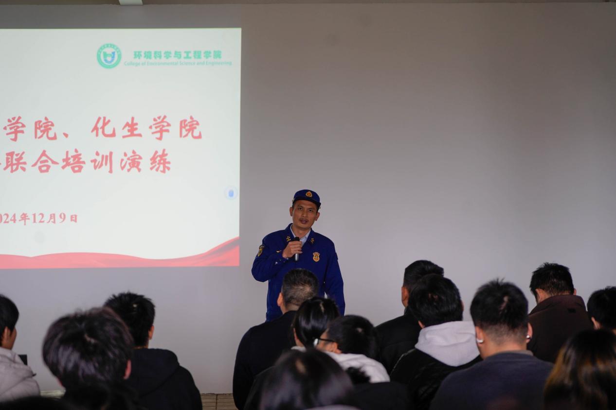 12月9日,我院联合环境学院在雁山教十二楼开展了消防知识培训及避险演练活动。学院党委书记彭代江、环境学院党委书记代武社、环境学院副院长朱宗强以及学校保卫处、两学院师生代表合计260余人参加了此次培训。 培训中,雁山消防队何参谋从如何正确掌握灭火器、消火栓的使用方法入手,分别介绍了消防安全隐患排查、初期火灾救援、消防应急逃生、消防安全宣传教育等“消防安全四个能力”建设要求。何参谋提醒,学校作为人员密集场所,校园食堂、学生宿舍、实验室等消防重点更应高度重视消防安全工作,希望大家时时关注消防,时刻关心消防,共同构筑校园消防安全防线。 随后,在教十二楼释放消防模拟警报,各楼层师生迅速进入演练状态,在学校保卫处和各负责老师的带领下,全体人员用湿毛巾捂住口鼻,弯腰贴墙有序穿过浓烟,有序组织学生从通过楼道安全撤离“火场”,有条不紊地到达安全区域,同学们通过现场演练,掌握了应急逃生基本技能技巧。 雁山消防队何参谋现场讲解 逃生演练 (一审:马文硕 二审:宋海民 三审:李少华)