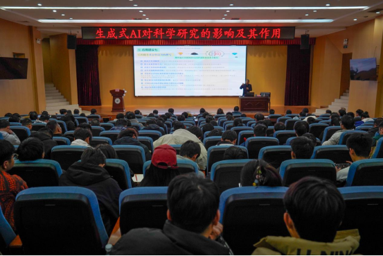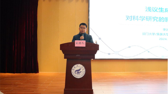 导航痕迹 当前位置: 首页 >> 新闻资讯 >> 学院新闻 >> 正文 集美大学原校长李清彪教授应邀到我院作学术报告 作者:马文硕 发布日期:2024-12-31 浏览次数: 2024年12月30日下午,集美大学原校长李清彪教授应我院邀请,在雁山校区图书馆报告厅作了题为“浅议生成式AI对科学研究的影响及其应用”的精彩报告。此次报告由我院院长匡小军教授主持,全校两百余名师生现场参加了学术报告会。 报告会上,李清彪教授以其深厚的学术造诣和前沿视野,深入剖析了生成式人工智能的崛起背景、演进脉络、应用领域及研究趋势。报告结合国内外高校调研数据、实际案例,使参会人员对生成式AI与高校人才培养、科学研究的关系有了更加全面深入的认识和思考。他指出,在生成式AI热潮下,人才培养和科学研究都需要与时俱进,教育工作者需要不断更新自己的知识体系,掌握最新的教育技术和方法,培养学生的批判性思维和创新能力,以适应新技术带来的挑战和机遇。 李清彪教授引用了大量国内外最新的研究,内容既前沿又充实,论述深入浅出,生动有力,让在场的每一位师生都深受启发。匡小军院长在总结时指出,李清彪教授的报告内容丰富、观点前瞻,对教师的教学改革和科学研究提供了有力的指导和启示。教学和科研工作要紧密结合AI技术发展趋势,将AI技术融入自己的教学和科研工作中,不断探索创新,为教育事业的发展贡献力量。 李清彪教授讲座 匡小军院长主持讲座 讲座现场 (一审:马文硕 二审:何方 三审:匡小军) 上一条:南宁师范大学化学与材料学院到我院开展参观交流 下一条:化生学院开展实验室安全检查与整改