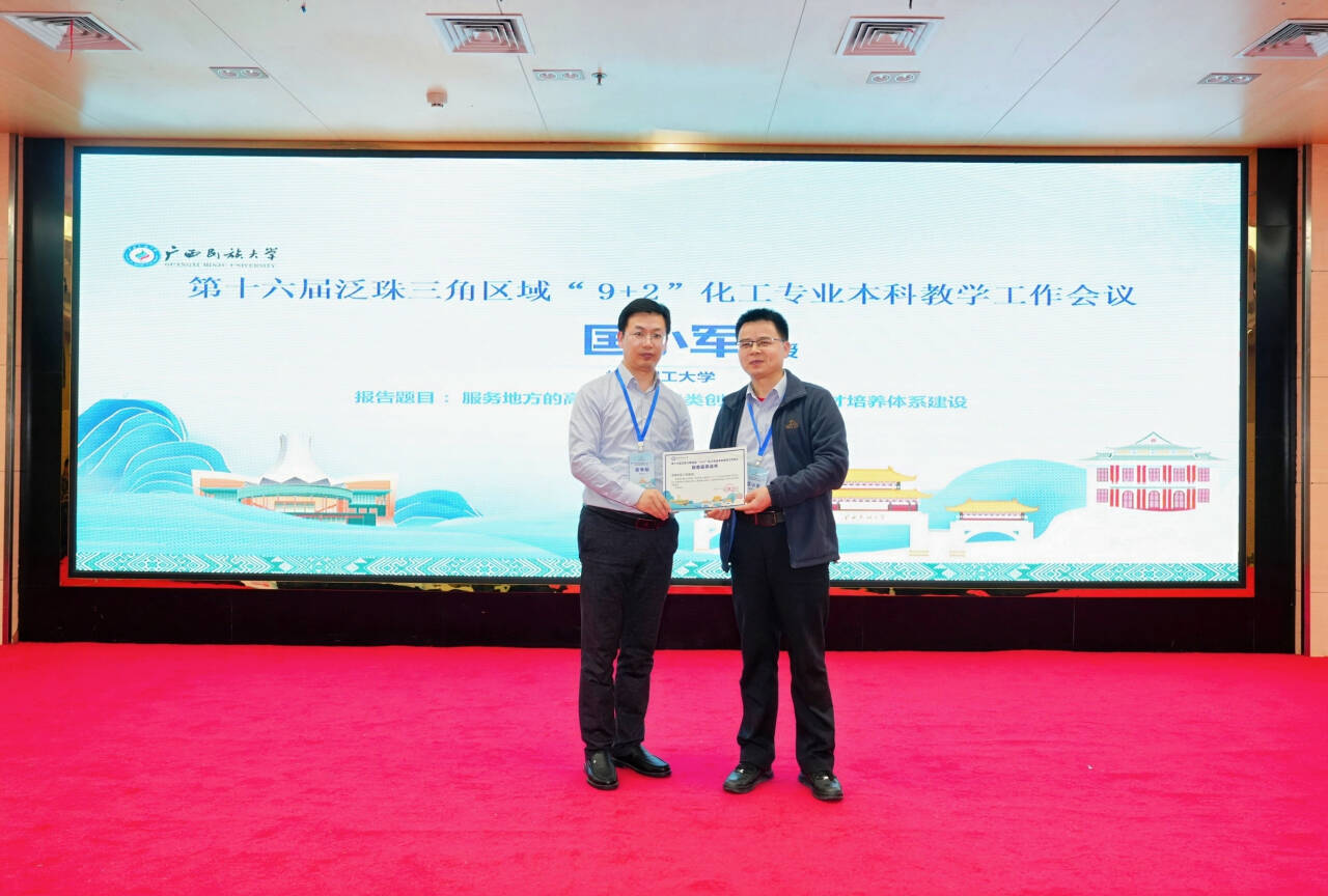 导航痕迹 当前位置: 首页 >> 新闻资讯 >> 学院新闻 >> 正文 学院院长匡小军带队参加2025年第十六届“9+2” 化工专业本科教学工作会议 作者: 发布日期:2025-04-01 浏览次数: 2025年3月28日至30日,第十六届泛珠三角区域“9+2”化工专业本科教学工作会议在广西南宁成功举办。本次会议由教育部高等学校化工类专业教学指导委员会主办,广西民族大学化学化工学院及广西多糖材料与改性重点实验室联合承办,来自华南地区高校和企业代表共计200余名代表出席大会。我院梁福沛教授、匡小军院长、李霞副院长、化工教研室主任王桂霞参加了此次会议。 会议在广西民族大学化学化工学院院长刘绍刚的主持下拉开帷幕。广西民族大学副校长姜明国教授、教育部高等学校化工类专业教学指导委员会副主任委员、四川大学梁斌教授和教育部高等学校化工类专业教学指导委员会委员、华南理工大学张正国教授致欢迎辞,强调深化工程教育认证、推动数智化教学改革的重要性,并呼吁加强校企协同育人,培养适应产业变革的复合型人才。大会报告环节汇集了来自高校、行业协会及企业的专题分享,涵盖工程教育认证、AI技术应用、课程建设创新等热点议题,其中中国化工教育协会秘书长唐旭华解析了工程教育认证标准与培养方案修订方向,华南理工大学张正国教授分享了能源化工专业课程建设经验,厦门大学李清彪教授分享了生成式AI在科研与教学中的实践应用。 我院院长匡小军教授做了题为“服务地方的高校化学化工类创新应用型人才培养体系建设”的报告。围绕“培养什么人,怎样培养人,为谁培养人”三个根源问题,介绍了我院在化工教育领域的实践路径,深入探讨了化学化工类创新型人才培养的融合路径,以及如何通过产学合作协同育人,培养更多适应新时代需求的化学化工人才,报告引发了与会嘉宾的热烈反响。报告会后我院参会老师与专家和学者进行了交流。此次会议交流为学院后续的专业、课程建设、学科竞赛等工作提供了创新性思路,特别是为人工智能赋能教学过程和专业建设提供了方向上的指导。 图1易争明教授授予匡院长讲座证书 图2 匡小军院长在会场作报告 (一审:王桂霞 二审:马文硕 三审:李霞) 上一条:浙大宁波理工学院仇丹教授应邀到我院作学术报告 下一条:我院成功组织首届全国大学生危险化学品安全知识竞赛校内选拔赛