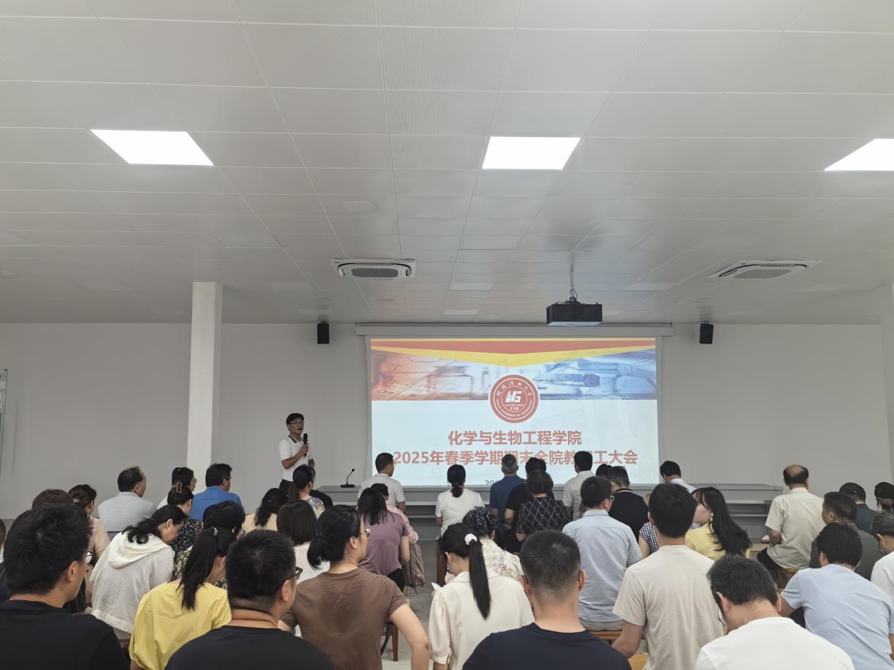 导航痕迹 当前位置: 首页 >> 新闻资讯 >> 学院新闻 >> 正文 学院召开2025年春季学期期末全院大会 作者:马文硕 发布日期:2025-07-09 浏览次数: 7月8日上午,77779193永利官网集团召开2025年春季学期期末全院大会,全体教职工参会。会议由学院党委副书记李少华主持。 学院领导班子成员按照岗位职责依次进行工作述职,向全体老师汇报本学期所完成的重点工作,并分别从党建工作、科研、研究生教学、本科生教学、学生工作、实验室安全管理等方面,对暑期及下学期相关重点工作进行部署。 彭代江书记在总结发言中,介绍了学院深入贯彻中央八项规定精神学习教育情况,并围绕未来发展提出了三点要求:一是要聚焦“立德树人根本任务”,深化教育教学改革,构建“数智+”人才培养体系,强化课程思政与专业教育深度融合,全面提升人才培养质量;二是要全体教职工以“攻坚克难”的锐气和“久久为功”的韧劲,为学院高质量发展凝聚磅礴力量;三要继续保持昂扬斗志,以更加务实的作风落实学院高质量发展核心任务。 李少华副书记主持会议 彭代江书记总结发言 (一审:马文硕 二审:袁亚利 三审:李少华) 上一条:柳州工学院食品与化学工程学院来访我院参观交流 下一条:学院召开巡视整改发现问题专项学习会议