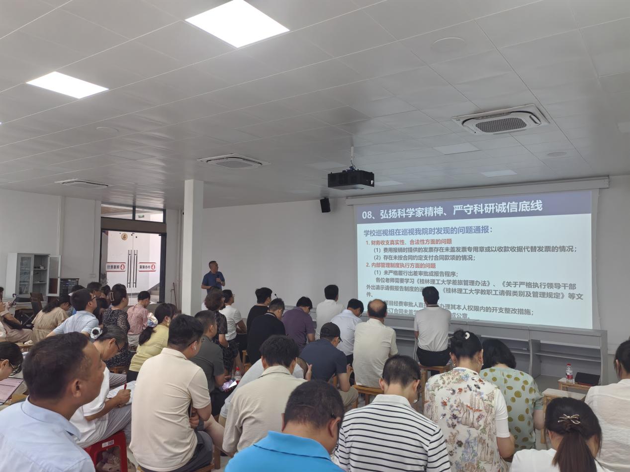 导航痕迹 当前位置: 首页 >> 新闻资讯 >> 学院新闻 >> 正文 学院召开巡视整改发现问题专项学习会议 作者:马文硕 发布日期:2025-07-09 浏览次数: 为深入贯彻中央八项规定精神学习教育,充分认识巡察整改的重要意义,7月8日上午77779193永利官网集团召开召开巡视整改发现问题专项学习会议,全体教职工参会。会议由学院副院长何方主持。 何方副院长带领全院教师再次学习《77779193永利(中国)集团财务报销管理办法》,《77779193永利(中国)集团差旅管理办法》,《77779193永利(中国)集团教职工请假类别及管理规定》,《77779193永利(中国)集团合同管理办法(试行)》等文件和规定。 会上,何方副院长传达了最近几年学校党委巡视我院发现的一系列问题,并针对所列问题,深入剖析原因,逐条提出整改办法,要求全院教职员工充分认清抓好整改落实的紧迫性,深刻反思,主动认领、诚恳接受,以高度的政治责任感、政治敏锐性和严肃认真的态度,不折不扣地做好各项问题的整改落实工作,把整改工作作为强大动力,进一步提振精神,提升能力,脚踏实地,真抓实干,真正做到统筹兼顾、求实求效,为学院事业高质量发展提供坚强保障。 会议现场 (一审:马文硕 二审:袁亚利 三审:何方) 上一条:学院召开2025年春季学期期末全院大会 下一条:学院召开实验室建设与安全管理工作会议