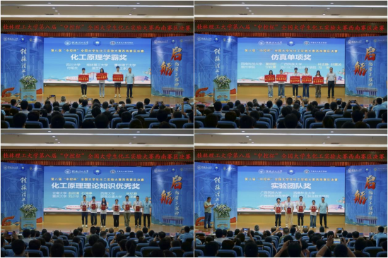 经过紧张和激烈比赛,最终决出特等奖8个,一等奖16个,二等奖24个,其中包括我校在内的四川大学、西南石油大学、四川轻化工大学、重庆理工大学、西华师范大学、重庆科技大学、昆明理工大学等8个院校团队获特等奖,另有化工原理学霸奖3项,化工原理仿真单项奖5项,化工原理理论知识优秀奖6项,实验团队优秀奖4项,优秀指导教师团队12项。特等奖队伍将参加8月份在华南理工大学举行的“全国大学生化工实验大赛”全国总决赛。我校同时获得最佳组织奖。