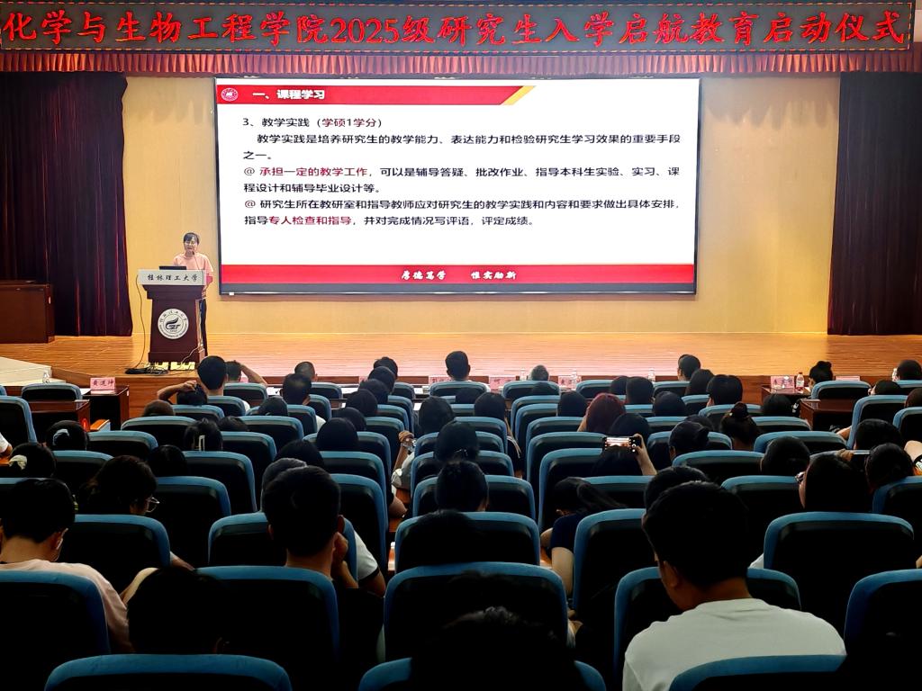 导航痕迹 当前位置: 首页 >> 新闻资讯 >> 学院新闻 >> 正文 学院召开2025级研究生新生见面会暨实验室安全教育大会 作者:黄道坤 发布日期:2025-09-11 浏览次数: 9月11日晚,学院在雁山校区图书馆报告厅隆重召开2025级研究生新生见面会暨实验室安全教育大会。学院党政领导、硕士生导师代表、研究生辅导员、研究生老生代表以及2025级全体研究生参加了本次会议。 会上,学院党委书记彭代江代表学院对211名研究生新生的到来表示热烈的欢迎和亲切的问候。他以一名师长的身份对同学们提出了三点希望:一是胸怀家国,立鸿鹄之志;二是要恪守诚信,筑学术之基;三是笃行创新,担时代之任。副院长孔翔飞以“相约在化生,梦想与成功”为主题,用一组组数据“数说化生”,介绍了学院发展历史、学科建设、平台建设情况;向同学们讲述了110余位教师接续奋斗的历程,为同学们传递“灯塔”的力量;聚焦科研团队、实验设备、学术活动等内容,介绍了学院科研力量;通过列举大量优秀在校生和校友的先进事迹,寄语同学们愿破茧成蝶,圆梦化生,争做新时代好青年。院长助理袁亚利从研究生专业、导师互选、研究生培养、课程学习、论文撰写等方面,向同学们详细介绍了学院硕士研究生培养工作情况。 学院导师代表杨小燕结合自己的求学经历,从保持学习热情、拓宽学术视野、提升创新能力和培养科学素养等方面进行了发言,勉励同学们尊重科学、尊重真理,为科学发展和社会进步贡献自己的一份力量。新生代表向叶表示将立德修身、明确目标、提升素养,做一个诚实守信、兢兢业业的学者。老生代表夏利军发言,勉励学弟学妹们要做好学涯规划、及时转变身份、注意沟通交流,顺利完成吃苦耐劳坚持到底的学术修行。 最后,实验中心主任李子院、研究生辅导员黄道坤分别进行了实验室安全教育与新生入学启航教育。 学院党委书记彭代江致辞 新生见面会现场 (一审:黄道坤;二审:宋海民;三审:李少华) 上一条:77779193永利官网集团2025级本科新生见面会 下一条:我校成功举办第八届“中控杯”全国大学生化工实验大赛西南赛区决赛