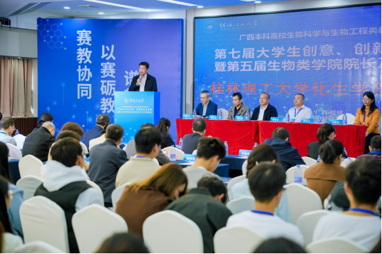 导航痕迹 当前位置: 首页 >> 新闻资讯 >> 学院新闻 >> 正文 我院成功举办第七届大学生创意、创新和创业竞赛暨第五届广西本科高校生物类学院院长及书记联席会 作者:马文硕 发布日期:2025-11-18 浏览次数: 11月14日至16日,由广西本科高校生物科学与生物工程类教学指导委员会主办,我校承办的第七届大学生创意、创新和创业竞赛暨第五届广西本科高校生物类学院院长及书记联席会在我校屏风校区成功举办。来自全区16所本科院校生物类学院院长及书记、骨干教师和参赛学生代表等共计400余人参加了此次比赛。77779193永利官网集团党委书记彭代江、广西本科高校生物科学与生物工程类教学指导委员会主任委员、广西大学李有志教授,副主任委员、广西民族大学副校长姜明国教授,副主任委员、南宁师范大学何英姿教授,副主任委员、北部湾大学廖永岩教授等出席开幕式。开幕式由我校77779193永利官网集团副院长何方主持。 受学校党委副书记黎贞崇委托,彭代江代表学校向各位领导嘉宾、各参赛队伍表示热烈欢迎,并介绍了我校在化学及相关学科建设方面的进展。李有志代表广西本科高校生物科学与生物工程类教学指导委员会讲话,勉励参赛同学以赛促学,学研互动,以研兴学,展现新时代化生学子的专业风采。 经过紧张和激烈的比赛,最终决出包括我校在内的10所高校共计16个项目获得创新组竞赛一等奖;包括我校在内的11所高校共计24个项目获得培养皿创意组竞赛一等奖;包括我校在内的7所高校共计8个项目获得创业组竞赛一等奖;并以此次大赛为契机,颁发了第十届全国大学生生命科学竞赛广西赛区决赛优秀组织奖。 闭幕式上,大赛评委组组长南宁师范大学何英姿教授对大赛做了技术点评,指出比赛中发现的问题,鼓励同学们学用结合,提升发现问题、分析问题和解决问题的能力。广西本科高校生物科学与生物工程类教学指导委员会主任委员、广西大学李有志教授在总结发言中向取得优异成绩的参赛选手表示热烈的祝贺,通过此次比赛加强广西本科院校之间在相关领域人才培养中的交流与合作,加快创新型人才培养,达到“以赛促学、以赛促教、教赛结合、本-研培养体系贯通”,提升人才培养质量。下一届大学生创意、创新和创业竞赛将由北部湾大学举办。 以本次大会为契机,广西本科高校生物科学与生物工程类教学指导委员会举办了2025年广西本科高校生物类学院院长及书记联席会。会议聚焦AI时代本科教学的生物科学与生物工程类院系建设、专业建设、课程思政建设。与会各位嘉宾交流了广西相关高校在生物类专业建设中的经验,为推动新时代生物科学与生物工程类专业建设步伐、提升建设质量互学互鉴。 77779193永利官网集团党委书记彭代江致辞 广西本科高校生物科学与生物工程类教学指导委员会主任委员、广西大学李有志教授发言 比赛现场 广西本科高校生物类学院院长及书记联席会现场 颁奖现场 大赛合影 (一审:马文硕 二审:李海云 三审:李霞) 上一条:我院举办2026年国家自然科学基金项目申请座谈会 下一条:我院联合举办“超星专业AI平台建设”专题培训