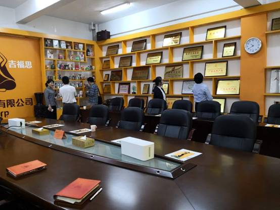 4月24日上午,在李建平院长带领下,生物工程教研室海洪教授等一行9人到桂林吉福思罗汉果有限公司参观交流。首先参观了桂林吉福思罗汉果有限公司成果和荣誉展示厅,接着与吉福思总裁蓝福生以及公司相关管理人员进行了座谈。
