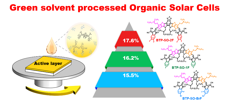基于非富勒烯受体(non-fullerene acceptor, NFA)的有机太阳能电池(organic solar cells, OSCs)虽然已经取得了长足的进步,光电转化效率(power conversion efficiency, PCE)超过了19%,但是在实现其商业化的道路上,为克服传统工艺使用有害的卤代溶剂,而采用绿色溶剂制备工艺(green solvent processed, GSP)获得高效的OSCs仍然极具挑战。因此,探索开发适用于高效GSP-OSCs的新型NFA材料变得尤为必要。