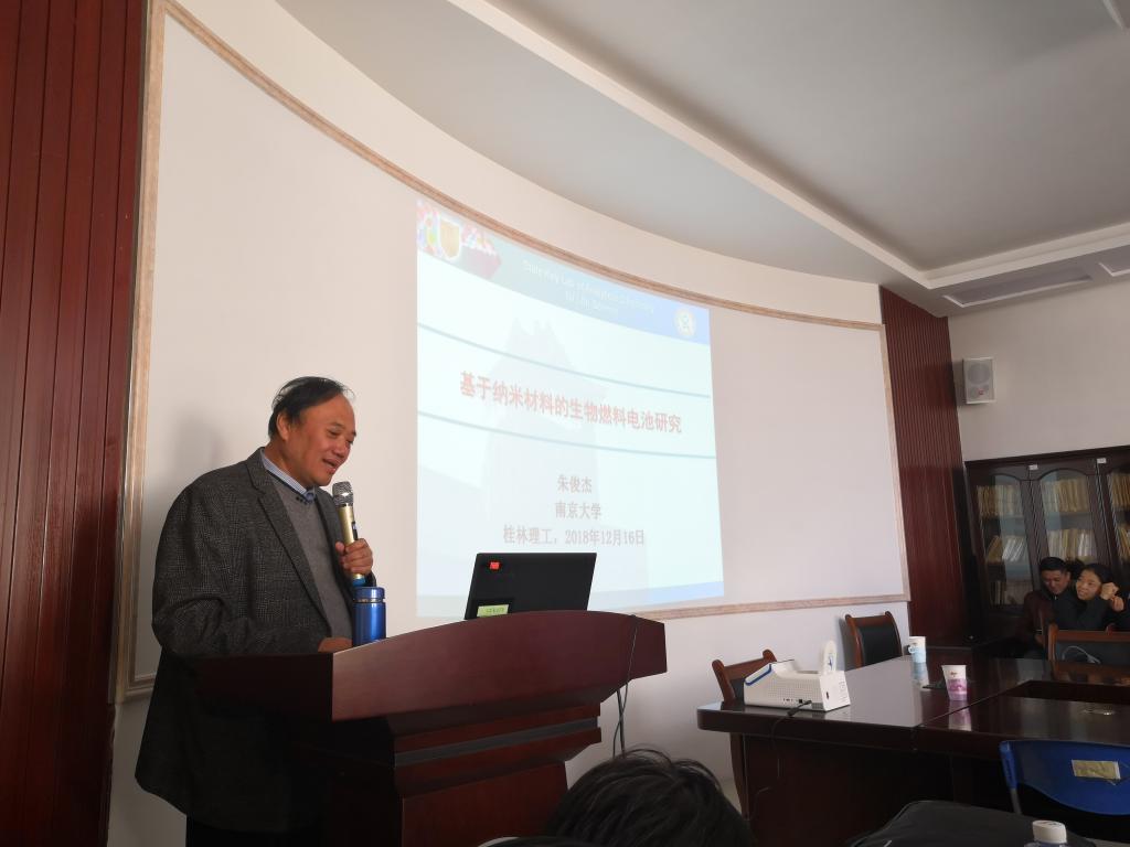 导航痕迹 当前位置: 首页 >> 科学研究 >> 学术动态 >> 正文 南京大学朱俊杰教授到我院作学术报告 作者:袁亚利 发布日期:2018-12-18 浏览次数: 2018年12月16日下午,南京大学朱俊杰教授在我院雁山校区12217多功能室作了题为“基于纳米材料的生物燃料电池研究”的学术报告。我院相关专业的师生听取了报告。报告会由我院院长李建平教授主持。 朱俊杰教授在报告会中介绍了生物燃料电池的基本理论以及纳米材料以其独特的物化性能、良好的生物相容性特性等给该领域带来的巨大发展空间。在此基础上,朱俊杰教授着重介绍了其课题组在聚吡咯包裹的产电菌用作阳极的生物燃料电池性能及通用性分析等方面所取得的研究成果,他们的研究主要围绕如何更好地提高电池性能展开的。同时他还讲解了自供能生物传感器用于疾病诊疗一体化等与生物医疗相关联研究热点,并展望了生物燃料电池将在自供能分析传感器、自供能诊疗一体化、自供能系统在疾病治疗方面研究趋势和研发应用前景。 朱俊杰教授的报告会气氛轻松愉快,使我院师生们对生物燃料电池这个传统课题在新兴领域的发展应用有了更深刻认识,拓展了大家的科研视野,激发了大家浓厚的学习和研究热情。 朱俊杰教授在作学术报告 学术报告会现场 上一条:广西电磁化学功能物质重点实验2020年学术年会系列学术报告 下一条:我院成功举办“能源存储与转换”主题学术沙龙活动