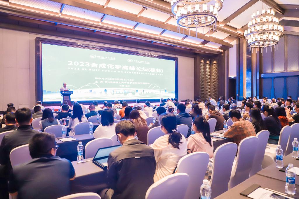 导航痕迹 当前位置: 首页 >> 科学研究 >> 学术动态 >> 正文 我校举办2023合成化学高峰论坛(桂林)学术会议 作者:刘耀明 发布日期:2023-05-17 浏览次数: 5月11日-16日,我校举办的2023合成化学高峰论坛(桂林)学术会议在桂林举行。开幕式于5月12日上午进行,本次会议主席、复旦大学张俊良教授,南方科技大学夏海平教授等30多位知名专家出席开幕式。学校校长王敦球教授为开幕式致辞,我校梁福沛教授主持开幕式。来自全国40多所高校、科研院所以及有关企业的160多名代表参加会议。 王敦球在致辞中介绍了我校基本情况以及化学学科建设情况,对参会专家的到来表示热烈欢迎,对专家们对我校建设和发展给予的关心和支持表示衷心感谢,期待大家在会上碰撞出更多思想的火花。夏海平教授代表参会专家发言,对我校和会议主席为大家提供共同探讨合成化学领域学术问题机会和平台表示感谢,希望年轻学者们对合成化学要充满兴趣和信心。张俊良教授在开幕式和闭幕式讲话中对全体参会代表前来参会以及会议筹备组的辛勤付出表示感谢。 与会专家学者围绕“合成化学发展中的新概念、新反应和新合成策略,合成化学在仿生和绿色合成及新药研发中取得的最新成果与进展,合成化学在功能分子构筑与应用方面的最新进展,合成化学中的物理化学机制方面的最新进展,合成化学中分析检测方法的最新应用与进展”等主题进行了深入探讨。会议共安排了38场学术报告,其中特邀报告34场、口头报告4场。 会议期间,学校还邀请部分专家学者参加了化学学科建设研讨会,专家们积极建言献策,提出了许多中肯的意见和建议,对我校化学学科建设发展起到非常重要的推动作用。 学校校长王敦球教授在开幕式上致辞 本次会议主席、复旦大学张俊良教授致辞 南方科技大学夏海平教授致辞 我校梁福沛教授主持开幕式 与会专家学者作学术报告(一) 与会专家学者作学术报告(二) 开幕式现场(一) 开幕式现场(二) 参会人员合影 上一条:华东师范大学姜雪峰教授到我校讲学 下一条:“东盟杰青计划”入选者邱福荣博士应邀为我院师生作学术报告