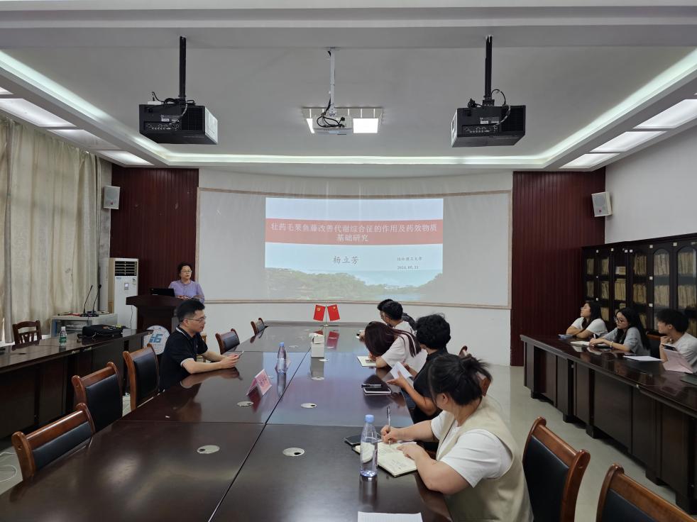 应我院邀请,广西民族大学杨立芳教授,于2024年5月31日下午在雁山校区12栋2楼12217会议室作了题为“壮药毛果鱼藤改善代谢综合征的作用及药效物质基础研究”的学术报告。学院生物工程教研室教师和相关专业的学生聆听了报告。报告会由生物工程教研室主任李静副研究员主持。 杨立芳教授为国家自然科学基金项目、广西自然科学基金项目和广西中医药管理局项目评审专家,广西民族大学 精细化工专硕方向负责人,主要从事药物资源、药用植物和微生物次生代谢产物生物活性及有效成分研究工作。报告会上,杨立芳教授从国家发展中医药战略和广西民族药资源出发,引入了壮药毛果鱼藤,介绍了他们课题组近年来关于壮药毛果鱼藤化学成分、改善代谢综合征作用机制和药效物质的研究所取得的研究进展和丰硕的成果。参会师生们对报告内容产生了极大的兴趣,并踊跃向杨立芳教授请教,报告会现场学术研讨气氛热烈。 本次报告会加深了师生们对壮药毛果鱼藤改善代谢综合征作用机制等研究有了深入的了解,对他们今后的相关研究具有重要的借鉴和促进作用。 一审:李静 二审:马文硕 三审:李霞 杨立芳教授作报告 报告现场