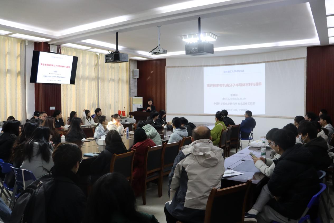 2025年1月15日上午,中国科学院化学研究所董焕丽研究员应我院邀请,在雁山校区12217会议室作了题为“高迁移率有机半导体材料与器件”的学术报告。此次报告由我院副院长孔翔飞教授主持,学院70余名师生参见。 报告中,董焕丽研究员介绍了有机高分子半导体材料的优势和发展历程,并重点围绕“高迁移率有机高分子半导体与晶体器件”和“高迁移率发光有机半导体与发光晶体管器件”两个主题,为在场师生做了详细的解读。董焕丽研究员表示,迁移率作为半导体材料的重要性能指标,会直接影响器件的应用领域。因此,其团队从分子—组装—物性—器件四个层次开展系统研究,致力于发展综合性能优异的高迁移率及多功能集成分子材料,制备高度有序及单晶性的聚集态结构,构筑高性能有机场效应晶体管及光电功能集成器件。近年来,实现了迁移率性能的新突破,并成功用于构筑高性能有机场效应晶体管及其相关光电功能器件。 最后,董焕丽研究员与在场师生积极互动,交流想法。董焕丽研究员对师生们提出的问题给予细致的解答。大家纷纷表示深受启发,收获满满。本次报告内容系统、科学,令与会师生受益匪浅,进一步激发了大家对高迁移率发光有机半导体材料及其应用前景的浓厚兴趣。 董焕丽研究员 讲座现场 (一审:马文硕 二审:张秀清 三审:孔翔飞)