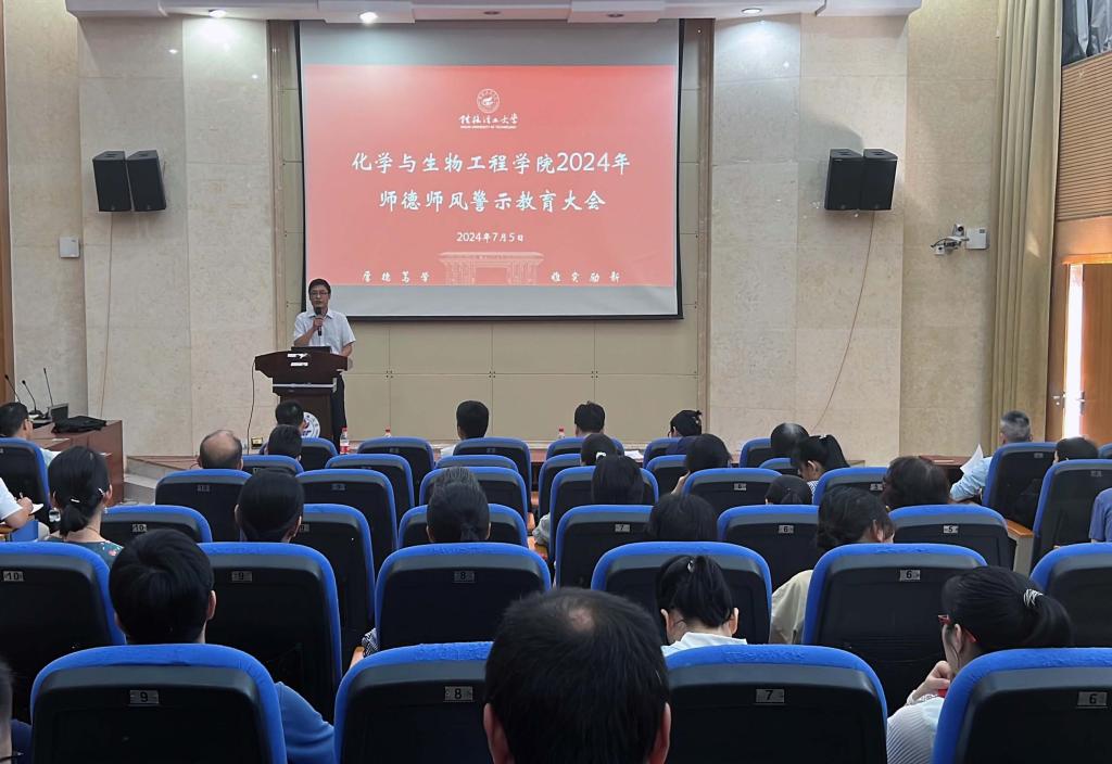 导航痕迹 当前位置: 首页 >> 永利集团 >> 党风廉政建设 >> 正文 【清廉学院】学院召开2024年师德师风警示教育大会 作者:黄道坤 发布日期:2024-07-05 浏览次数: 为深入开展学习贯彻习近平新时代中国特色社会主义思想主题教育,全面推进师德师风建设,加强广大教师思想政治素质和职业道德观念。7月5日上午,学院在雁山校区萃华楼报告厅召开了2024年师德师风警示教育大会,学院全体教师参加。会议由党委副书记、纪委书记李少华主持。 会上,李少华结合教育部网站公开曝光的违反教师职业行为十项准则典型案例为反面教材,分类介绍师德违规问题和处理结果,引导教师以案为鉴,警示自我。并对照新时代教师职业行为十项准则,从课堂教学、关爱学生、师生关系、学术研究、经费使用、社会活动等方面进行强调,进一步引导教师以案明纪,做到警钟长鸣。学院党委书记彭代江强调,学院广大教师要引以为戒,牢固树立底线意识,切实增强遵守教师职业行为十项准则的思想自觉和行动自觉,坚守师德底线,防微杜渐,知敬畏,守底线,不踩红线;坚守为党育人、为国育才的初心,不断涵养高尚师德,以德施教、以德育德,做党和人民满意的“四有”好老师;坚守人格底线,率先垂范,以身作则,争做大先生,做学生为学、为事、为人的示范,助力学院内涵式高质量发展! 本次会议的召开,为全体教师敲响了师德建设的警钟,增强了教师的责任感、使命感,进一步健全了师德师风常态长效的工作机制,推动师德师风建设工作再上新台阶。 会议现场 上一条:【中心组学习】学院召开党委理论学习中心组(扩大)2024年第三次集中理论学习会 下一条:【清廉学院】学院举办“清风正气,廉洁筑梦”主题系列活动
