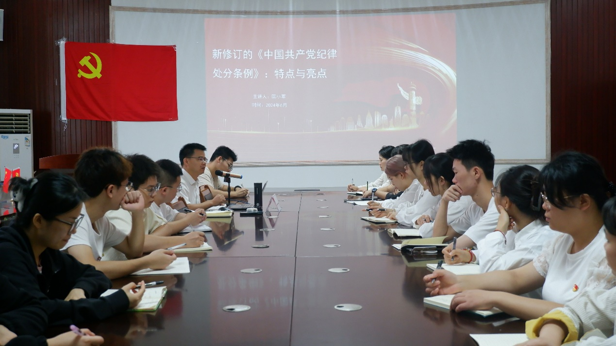 导航痕迹 当前位置: 首页 >> 永利集团 >> 党风廉政建设 >> 正文 【党纪学习教育】学院党委副书记、院长匡小军为师生党员代表讲授党纪学习教育纪律党课 作者:熊艳 发布日期:2024-06-28 浏览次数: 6月26日,学院党委副书记、院长匡小军为师生党员代表讲授党纪学习教育纪律党课,强调要认真学习《中国共产党纪律处分条例》,推动党纪学习教育走深走实,在全院上下营造学纪、知纪、明纪、守纪的浓厚氛围。 匡小军指出,党纪学习教育是以习近平同志为核心的党中央作出的重大部署,是加强党的纪律建设、推动全面从严治党向纵深发展的重要举措。新征程上,要牢牢把握党纪学习教育的重大意义,自觉用党规党纪校正思想和行动,真正使学习党纪的过程成为增强纪律意识、提高党性修养的过程,切实把思想和行动统一到党中央决策部署上来。 匡小军强调,要通过本次学习教育把遵规守纪刻印在心,内化为日用而不觉的言行准则。要学懂弄通《条例》的主旨要义和规定要求,加强“以案说纪、以案说法、以案说德、以案说责”警示教育,推动师生党员深化对《条例》的理解领会和转化运用,促进师生党员在党纪学习教育中强化忠诚干净担当。 党课现场(一) 党课现场(二) 上一条:【清廉学院】学院举办“清风正气,廉洁筑梦”主题系列活动 下一条:【党纪学习教育】学校党委常委、副校长黎贞崇为学院师生党员讲授党纪学习教育纪律党课