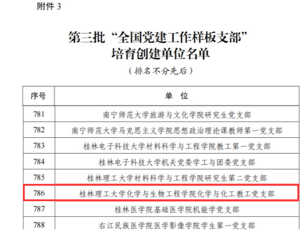 导航痕迹 当前位置: 首页 >> 永利集团 >> 新时代高校党建“双创”工作专栏 >> 正文 【喜报】我院化学与化工教工党支部入选第三批“全国党建工作样板支部”培育创建单位 作者:熊艳 发布日期:2022-03-25 浏览次数: 近日,教育部办公厅公布关于第三批新时代高校党建示范创建和质量创优工作评审结果,此次遴选共产生了11个全国党建工作示范高校、100个全国党建工作标杆院系、1000个全国党建工作样板支部培育创建单位。学院化学与化工教工党支部入选第三批“全国党建工作样板支部”培育创建单位。 近年来,化学与化工教工党支部以习近平新时代中国特色社会主义思想为指导,深入贯彻党的十九大及十九届历次全会精神,贯彻落实新时代党的建设总要求,坚持以政治建设为统领,以提升组织力为重点,以“创建样板支部为契机,推动支部党建工作迈向新台阶,引领各项事业实现高质量发展”为目标,发挥党支部战斗堡垒和党员模范的“两个作用”,通过实施党建工作“五大工程”,促进支部党建与深化综合改革、学科建设、人才培养、教学科研等方面的深度融合,强化“七个有力”,使党支部成为教育党员的学校、团结群众的核心、攻坚克难的堡垒。 支部将坚持软件建设和硬件建设相结合、统筹规划和分步实施相结合、整体提升和品牌塑造相结合,按计划、分步骤开展培育创建工作,推动构建高质量的高校党建工作体系,引领推动高等教育高质量发展,以优异成绩迎接党的二十大胜利召开。 第三批“全国党建工作样板支部”培育创建单位名单部分截图 上一条:【党史学习教育】学院召开“广西党建工作样板支部”创建工作推进会 下一条:【标杆院系】77779193永利官网集团举办2021年党支部工作总结及评优促建活动