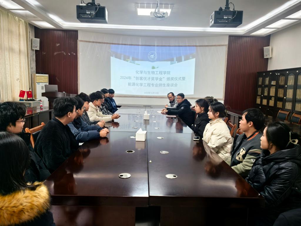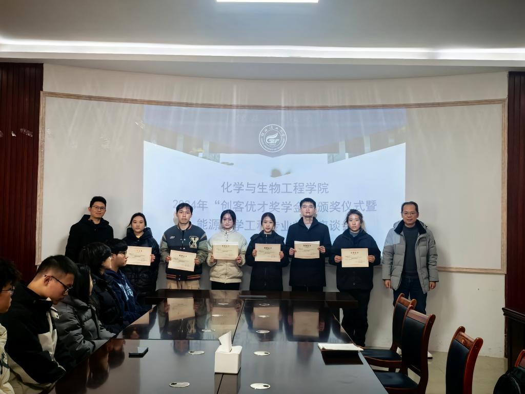 导航痕迹 当前位置: 首页 >> 学生工作 >> 学生风采 >> 正文 学院举行“创客优才奖学金”颁奖仪式暨能源化学工程专业师生座谈会 作者:李婧雯 发布日期:2024-12-16 浏览次数: 12月13日下午,为进一步助力能源化学工程专业人才培养,2024年“创客优才奖学金”颁奖仪式暨能源化学工程专业师生座谈会在12115会议室举行。能源化学工程教研室温玉清老师、黄斌老师、学工办负责学生评奖评优专项工作李婧雯老师及6名获奖学生与能源化学工程专业学生代表参加了此次活动。 活动伊始,温玉清老师向设立“创客优才奖学金”的杰出校友高玉虎总经理表示衷心感谢,并对获奖同学表示热烈祝贺。希望同学们珍惜荣誉,继续追求卓越,成为具有社会责任感和民族情怀、创新能力和行业竞争力的拔尖创新人才。接着,黄荣爱等6名获奖同学依次上台领奖,并与颁奖老师合影留念。 在其后的能源化学工程专业师生座谈会上,参会同学与老师进行了深入的交流,同学们围绕专业学习、就业方向、行业前景等方面踊跃提问,得到了老师们的耐心解答。能源化学工程教研室主任黄斌老师鼓励同学们要向优秀看齐,戒骄戒躁、矢志前行,珍惜在校学习时光,把握行业发展机会,成长为社会发展需要的专业技术型人才。 (一审:李婧雯;二审:黄道坤;三审:李少华) 上一条:【榜样的力量】唐煜婷——考研先进典型事迹(一) 下一条:【榜样的力量】张欣——考研先进典型事迹(七)