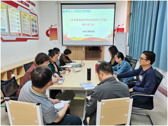 导航痕迹 当前位置: 首页 >> 教育教学 >> 本科教育教学审核评估 >> 正文 生物工程教研室召开审核评估学习手册学习会 为了更好的迎接即将到来的本科教育教学审核评估工作,2023年4月14日,生物工程教研室在教12楼二楼连廊会议室召开了《本科教育教学审核评估学习手册》(教师版)集中学习会议,教研室全体在岗教师参加了此次会议,会议由教研室主任李静主持。 会上,李静带领全体教研室老师逐项学习了《本科教育教学审核评估学习手册》(教师版)各部分内容,并对涉及到与本专业相关、学院建设措施相关的部分进行了重点解读和讨论。通过本次集中学习,老师们统一了思想,对本科教育教学审核评估的重要性、必要性有了充分的认识,对“以评促建、以评促改、以评促管、以评促强”的宗旨有了更深入的了解,深化了全体教师对学校、学院在本科教育教学工作的认识。在交流环节,教研室全体老师就目前教育教学方面存在的问题进行了热烈讨论,提出了一些具体的意见和建议。 最后,老师们纷纷表示,要从自身出发,以审核评估为契机,努力提升教学能力,规范教学活动,高标准要求自己,为本专业的教学质量提升,圆满完成审核评估任务。 【 发布日期:2023-04-17 浏览次数: 】 上一条:我院组织全体学生学习《本科教育教学审核评估学习手册》 下一条:我院召开本科教育教学审核评估推进会议
