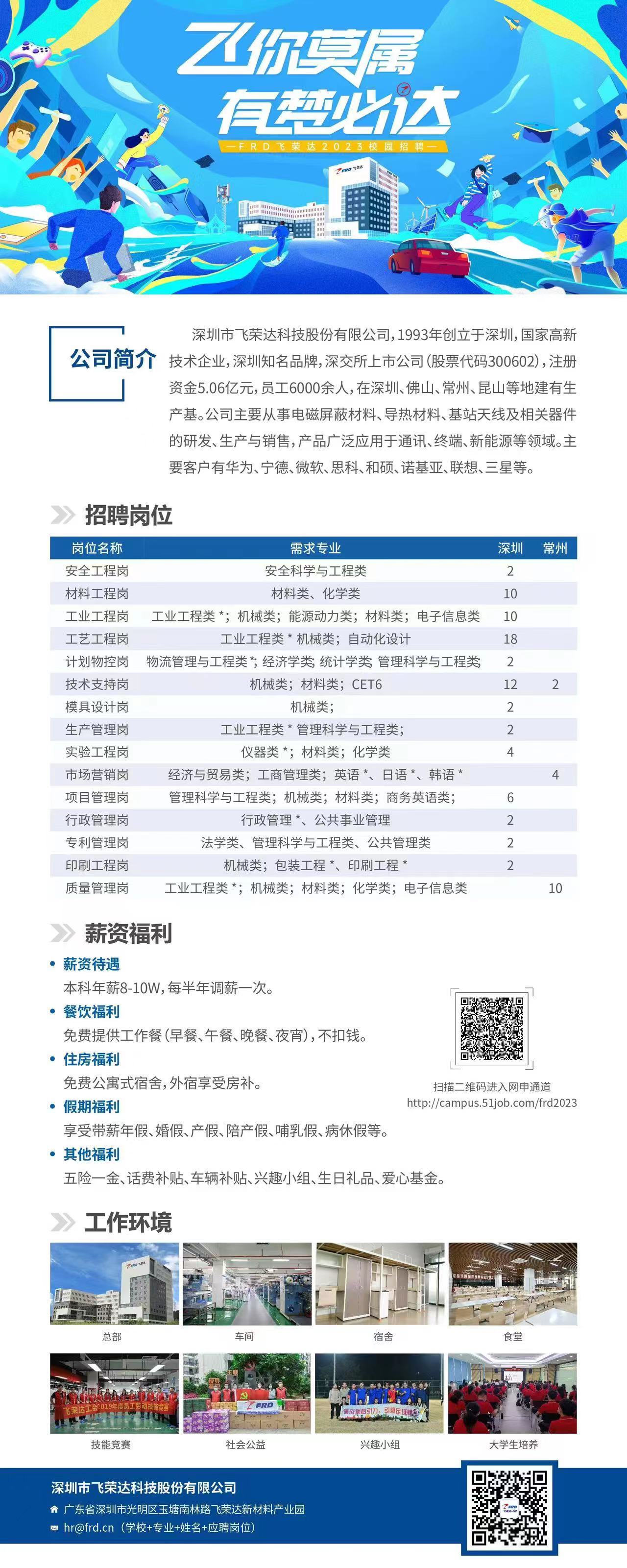 导航痕迹 当前位置: 首页 >> 招生就业 >> 招聘信息 >> 正文 【招聘信息】深圳市飞荣达科技股份有限公司 作者:朱皓 发布日期:2023-03-10 浏览次数: 深圳市飞荣达科技股份有限公司将于2023年3月16日10:00—12:00在雁山校区校园招聘中心宣讲室(一)进行招聘,详情如下: 上一条:【招聘信息】养生堂·农夫山泉·万泰生物专场招聘会 下一条:日东精密回路技术(深圳)有限公司来我院开展专场宣讲会