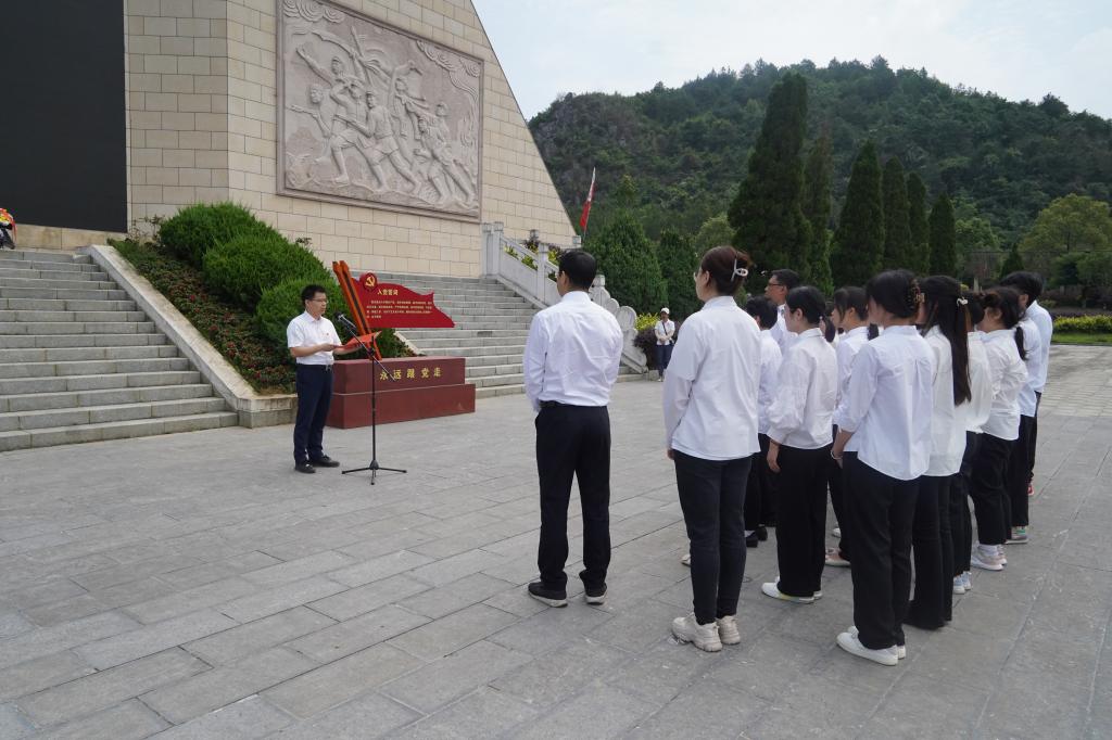 “一草一木一忠魂,一山一石一丰碑”。师生党员来到湘江战役新圩阻击战酒海井红军纪念园,首先来到红军帽主墓冢前向红军烈士敬献花篮并默哀致敬,接下来在党委副书记李少华带领下,师生党员们重温入党誓词。在纪念馆内,大家认真聆听讲解员的讲述,看着一件件烈士遗物,一张张历史照片,一段段史实资料,感受阻击战时战争的艰苦紧迫,战士的英勇无畏