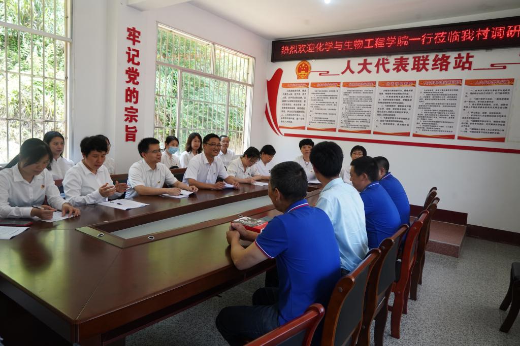 学院化学与化工教工党支部与灌阳县灌阳镇大源村党支部结对共建,以“党建引领,专业支撑”为目标的校地结对共建,抓细走深,落实落细为民办实事,助力乡村振兴。在座谈会上,驻村第一书记李学来介绍大源村目前产业建设、村容村貌、村民收入及未来产业发展的方向,学院院长匡小军根据大源村目前情况指出学院可以提供的技术支持及人才支持。随后进行结对共建揭牌仪式暨捐赠仪式。最后来到白芨种植基地进行实地调研,听取产业发展的技术需求,共同研讨如何从土壤检测来提高产量、从生物工程提取来提高收益。