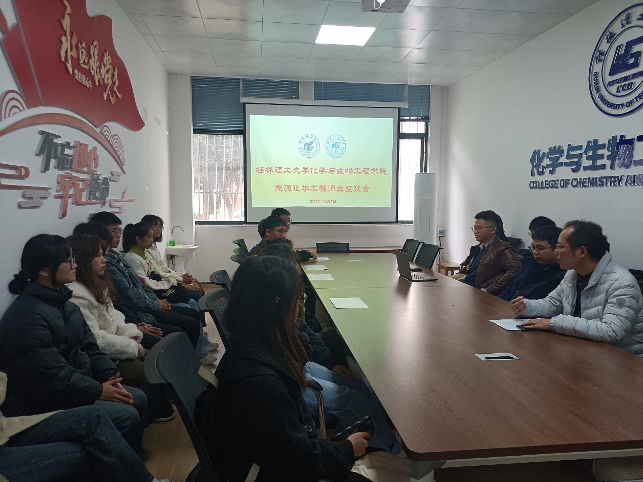 为进一步加强师生之间的沟通交流,提升本科生对专业的认同感,能源化学工程教研室于2023年12月8日中午在雁山12115会议室举行了师生座谈会。教研室主任黄斌副教授主持了座谈会,能源化学工程教研室温玉清教授、陆振欢教授、辅导员张伟颀老师以及能源化学工程专业2021、2022和2023级学生代表参加了座谈。 座谈会上,学生代表们畅所欲言,主要围绕学业规划、就业、考研等方面提出了问题,与会的老师们详细地解答了同学们关心的问题,并结合能源化工的专业特色对低年级的同学们作了学业规划指导,对高年级的同学们做了就业指导,也鼓励了同学们积极准备考研。 本次座谈会为师生间的畅通交流构建了平台,让学生们更深入地了解了能源化学工程专业,提高了学生的专业认同感,也让专业教师们直接倾听学生心声,更好地了解学生的所思所想,有利于教学活动的开展和人才培养。 座谈会现场 老师们与学生交谈 (一审:黄斌;二审:刘耀明;三审:李少华)