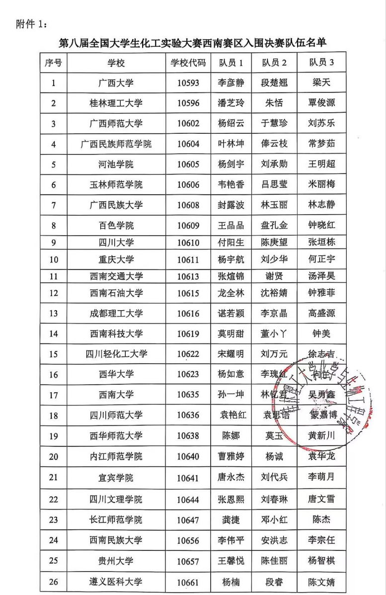导航痕迹 当前位置: 首页 >> 教育教学 >> 第八届全国大学生化工实验大赛西南赛区专栏 >> 正文 第八届全国大学生化工实验大赛西南赛区入围决赛队伍名单通知 【 发布日期:2025-06-24 浏览次数: 】 上一条:第八届“中控杯”全国大学生化工实验大赛西南赛区决赛通知 (第三轮)